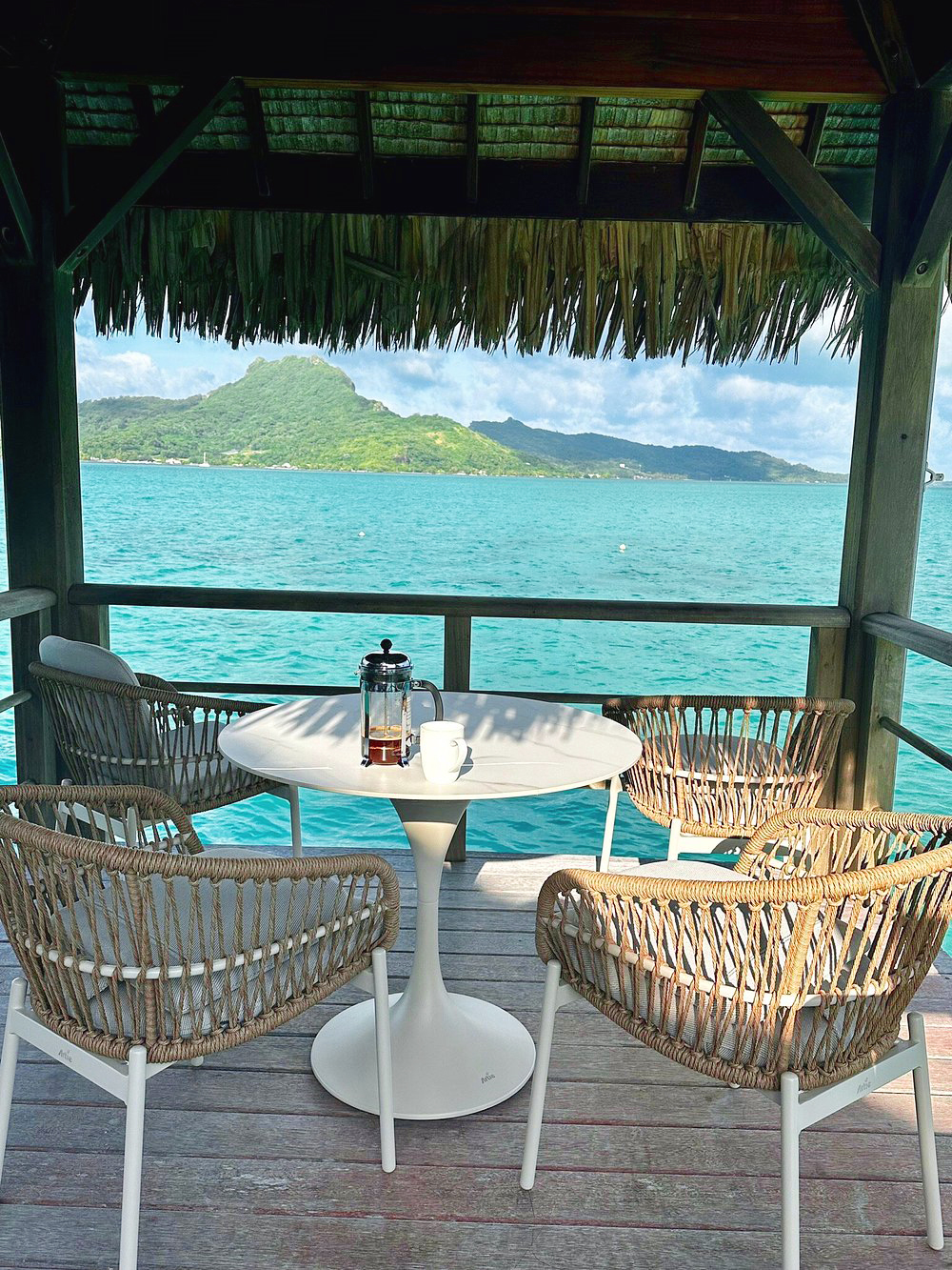 波拉波拉圣瑞吉度假村的海滨别墅露台,完美融合了奢华格调与私密体验。亚帝以匠心打造的户外家具,恰到好处地衬托出这片天地的原始之美,让这里成为放松身心、尽享优雅的世外桃源。