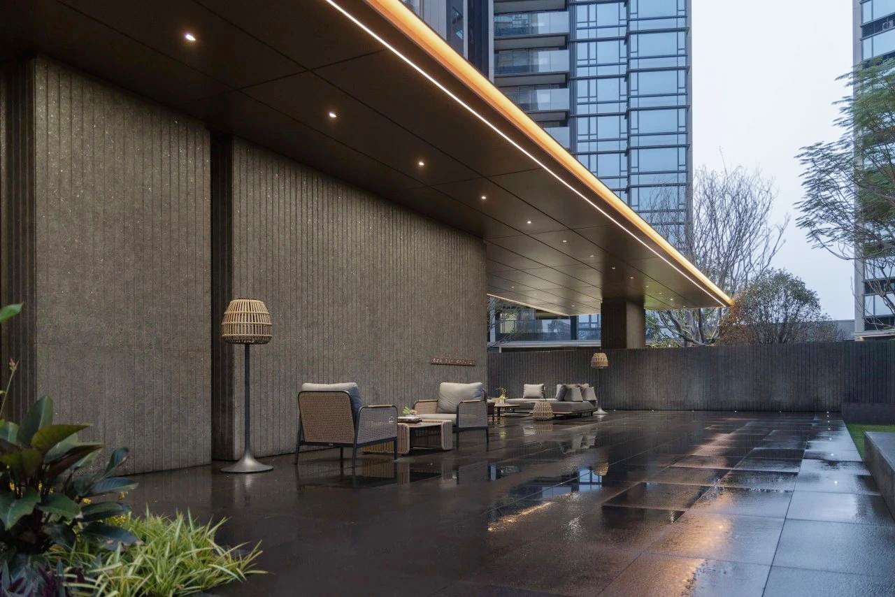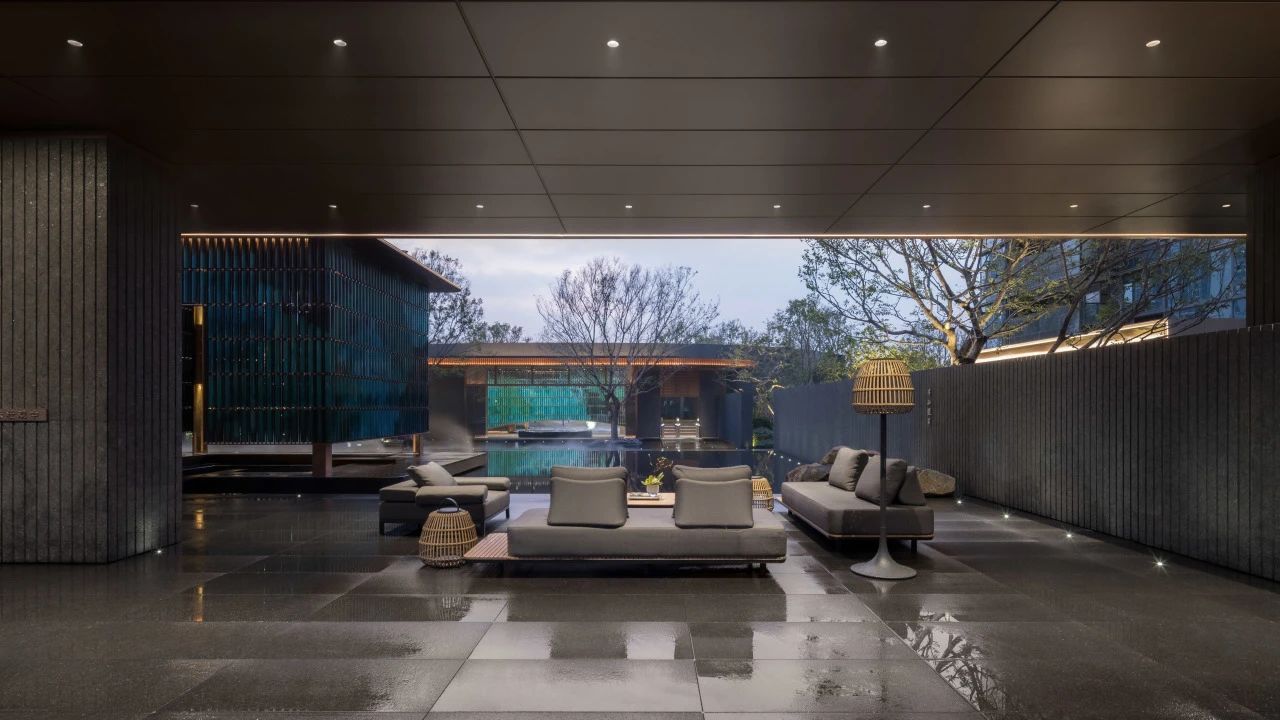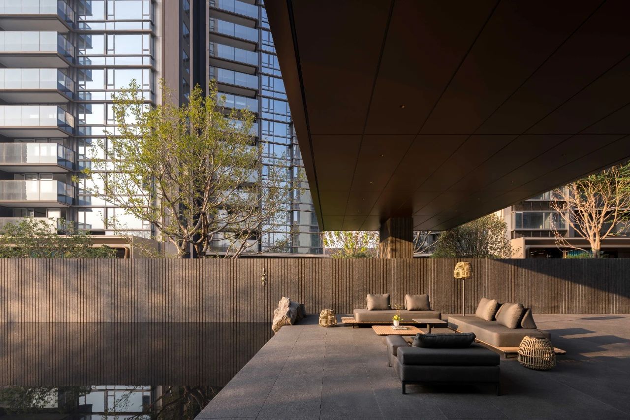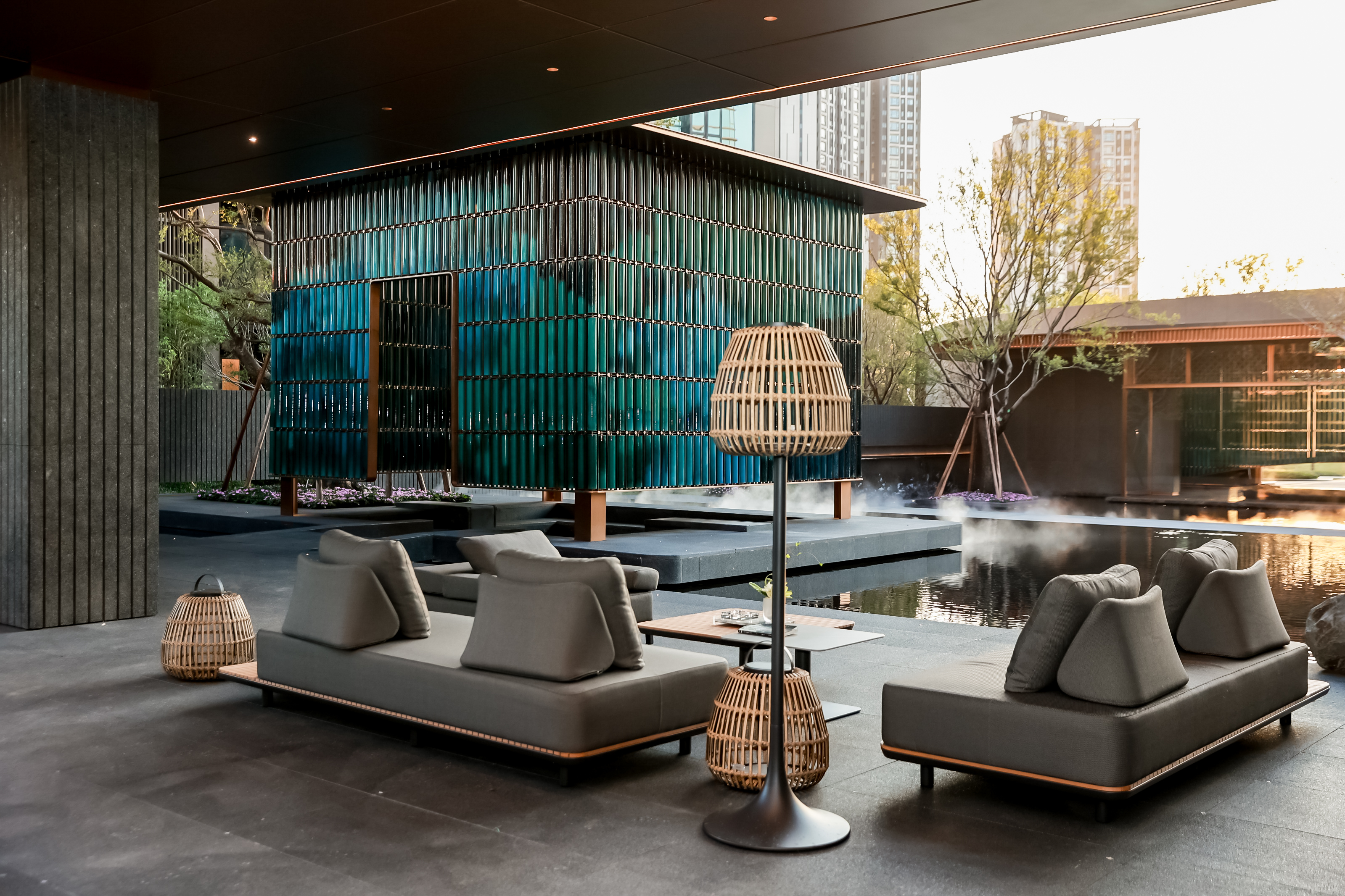 池畔一侧,嘉年华躺椅以流动的线条写意舒展。其造型轻盈而富有韵律,与水体、光影和建筑相映成趣,为放松身心提供了一处舒适又不失美感的休憩点。