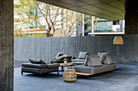 漫步绿意小径,可见纳帕沙发与玛乌伊方形茶几低调融入景观。细腻的坐垫与考究的工艺无声对话,营造出温暖而不张扬的气氛,邀请人们停下脚步,在自然包裹中享受宁静时分。